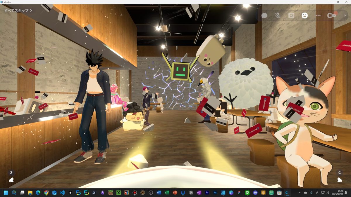 今日のマイクラ部では、マイクラ活動の時間外にメタバース「cluster」を使って遊んでみました。現在子供たちはマイクラカップのワールド制作についての打ち合わせをLINEやDiscordを使っているわけですが、メタバース空間を使っての打ち合わせなどもできたら面白そうですね。