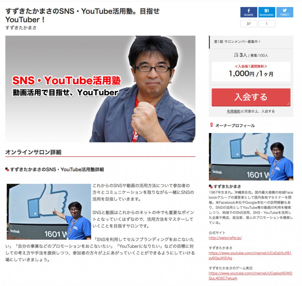 このたびDMMオンラインサロン「すずきたかまさのSNS・YouTube活用塾。目指せYouTuber!」をスタートしました。