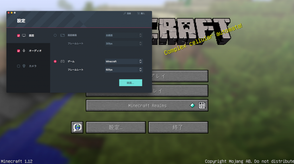 試しにマインクラフトをキャプチャしてみました。QuickTimeなどを使ってキャプチャするよりも手軽です。
