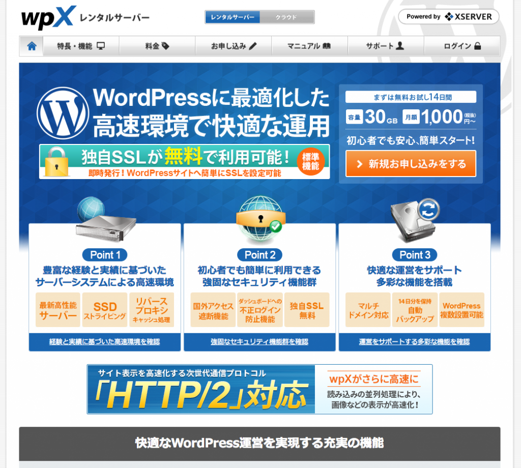 WordPressに特化したレンタルサーバー『wpXレンタルサーバー』
